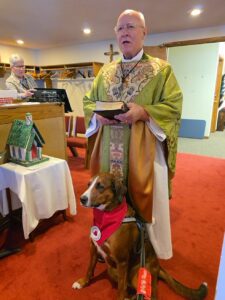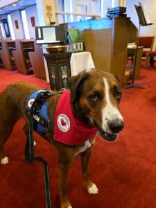 Hemi is a Pet Therapy of the Ozarks dog. He visits schools, hospitals, libraries, special events and church. He visits Shepherd of the Hills Episcopal Church each Sunday. His owners are Fr. Bill and Deb Myrick.