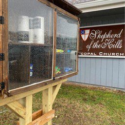 Did you know that we have a Little Free Pantry named Pammy? It’s the box located at the entrance drive to the church for our neighbors in need. This month we are collecting toiletries, granola bars, instant coffee. Monetary donations are always appreciated.